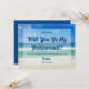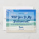 Ce magnifique mariage sur la plage Will You Be My Bridesmaid card présente une magnifique photo des vagues de l'océan pour un mariage de destination. Jolie photographie de plage associée à une élégante typographie bleue crée une carte chic et moderne de proposition de fête de mariée pour un événement d'île tropicale.
