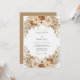 This design features a warm, earthy color palette with rich ochre tones. Cascading botanical arrangements of roses and foliage create a full, abundant display, evoking a rustic and natural feel. The artwork showcases a detailed illustration of blooming flowers and leaves.