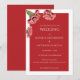 Cette invitation de mariage personnalisée présente des illustrations d'oeillets roses dans un style réaliste. Les fleurs roses sont dressées contre un riche arrière - plan rouge avec tous les détails de votre événement en lettres blanches.