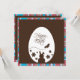 Illustration de Joyeuses Pâques avec un œuf de Pâques minimaliste simple coloré avec des silhouettes de lapin, papillon, fleurs et vœux de Pâques sur fond brun chocolat avec un cadre rayé.