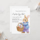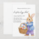 Célébrez Pâques avec cet adorable lapin qui tient des oeufs dans le panier Invitation à la chasse aux oeufs de Pâques! Doté d'un lapin sucré tenant un panier rempli d'oeufs colorés de Pâques, ce design donne vie à la joie et à la fantaisie de la saison. Parfait pour une chasse aux oeufs de Pâques, une réunion de famille ou une fête de printemps festive, cette invitation personnalisable vous permet de personnaliser tous les détails de l'événement, y compris la date, l'heure, l'emplacement et la RSVP. Invitation vos proches pour se joindre à l'amusement et créer des souvenirs durables avec ce design charmant et festif!