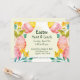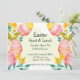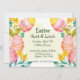 Invitation avec œufs de Pâques et fleurs à l'aquarelle.