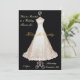 Elégante invitation à la douche de mariage faite en noir jet avec une robe mariage sur un stand. Customiser avec les informations sur les épouses dans les champs de texte.