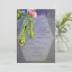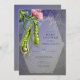 De belles fleurs de pois roses et des pois dans un pod ornent ce cadre en cristal géométrique or qui est placé sur un dégradé bleu violet à champignons gris texturé arrière - plan - tous les détails de votre douche dans le cadre en fil d'or - dans le style - le tout est mis en place avec un joli titre de calligraphie script 'Oh Baby!' en blanc.