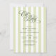 Des invitations élégantes pour les douches pour bébé tout-en-un à rayures vert et blanc, sans distinction de genre, avec un design à double face, offrent une façon élégante et coordonnée de célébrer un bébé sur le chemin. L'avant présente des bandes verticales pastel vert doux avec un arrière - plan blanc immaculé, magnifiquement couplé avec un script gracieux pour le titre "Oh Baby" et le texte serif raffiné pour les détails de l'événement. Le dos continue l'aspect cohésif, avec des sections pour l'information RSVP, un poème "Livres pour Bébé" sincère encourageant les invités à apporter un livre spécial, et une section "tombola de couche" pour une activité de douche amusante et pratique. Parfait pour les baby showers traditionnels sans distinction de genre, ce design d'invitation tout-en-un allie beauté, fonctionnalité et touches sentimentales, créant un souvenir poli et mémorable pour les clients. Disponible sous forme de cartes imprimées ou en téléchargement numérique instantané.