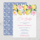 Une petite fille est en route ! Célébrez avec ces jolies invitations branchées avec des citrons d'aquarelle vibrants et des feuilles vert brillant avec de jolis roses d'aquarelle rose et des pivoines, complétées par le cobalt bleu et blanc inversé de tuiles. (Pour des mots autres que "Oh Baby", s'il vous plaît envoyez-moi un courriel).