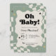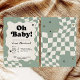 Retro Baby Shower, Oh Baby Invitation, Sage Green Checkered, Wavy Border Invite, 70s Style Baby, Modern Groovy Shower, Gender Neutral Retro, Checkered Pattern, Trendy Baby Shower, Sage Green Invitation, Starry Baby Shower, Groovy Baby Theme, Vintage Style Invite, Cool Baby Shower, Minimalist Retro