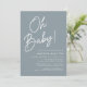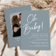 Invitations simples de douches bébé avec "Oh Baby !" affichées dans un script blanc gras avec un arrière - plan bleu poussiéreux. Personnalisez les invitations minimalistes de douches pour bébé avec le nom de la mère et les détails de la douche. Les invitations de douche bébé bleu poussiéreux s'inversent pour afficher votre photo de grossesse et le texte personnalisé. Les invitations sont parfaits pour des baby showers sans distinction de genre !