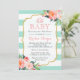 Invitation Oh Baby shower Mint Green Stripes rose Floral