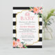 Invitation Oh Baby shower Moderne Floral Gold Frame Stripes