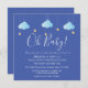 Avec de mignons nuages bleus et des étoiles d'or sur des cordes, sur un arrière - plan bleu, ce baby shower en couple ou une invitation saupoudrée est parfait pour tous les petits qui sont en chemin. Ajoutez les détails de votre célébration en blanc pour créer l'invitation parfaite. Conçu par Thisisnotme©