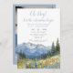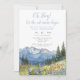 This modern, elegant, oh boy let the adventure begin watercolor mountain wildflower boy baby shower invitation can be personalized with your information in modern typography and a special photo on the reverse along with a registry QR code. Designed by Thisisnotme©