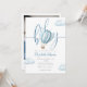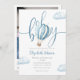 Cette charmante invitation au baby shower comporte une jolie montgolfière bleue et des nuages, ainsi qu'une élégante typographie de script. Avec votre code QR de registre et photo spéciale au verso. Conçu par Thisisnotme©