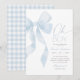 Invite friends and family to share in the joy of your little one's arrival with this blue bow themed baby shower invitation.