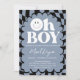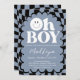 Invitation Oh Boy! Blue Checkered Happy Face Baby Shower
