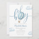 Cette charmante invitation au baby shower comporte une jolie montgolfière bleue et des nuages, ainsi qu'une élégante typographie de script. Avec le code QR de votre registre et les détails de l'événement au contraire. Conçu par Thisisnotme©