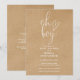 Cette élégante invitation de baby shower kraft rustique de style script et neutre en terme de genre peut être personnalisée avec toutes les informations de votre célébration spéciale avec votre code QR de liste de naissance et les détails de l'événement au verso. Conçu par Thisisnotme©