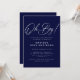 Invitation Oh Boy Modern Script Navy Blue Baby Shower