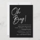 Simples invitations de douches pour bébé avec "Oh garçon !" affichées dans un script blanc gras avec un arrière - plan noir. Personnalisez les invitations minimalistes de douches pour bébé avec le nom de la mère et les détails de la douche. Les invitations à la douche bébé en noir et blanc s'inversent pour afficher votre photo de grossesse et le texte personnalisé. Les invitations sont parfaits pour les garçons baby showers !