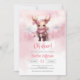 Le design de Whimsical pour le Baby shower de fille d'hiver dispose de petit cerf de bébé rose avec dans conte de fées forêt enneigée. N'hésitez pas à me contacter pour les articles correspondants ou la personnalisation. Impressions violettes ©