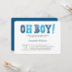 Elégante, simple, moderne invitation baby shower garçon en marine et bleu caractéristiques ''oh garçon!' script de typographie dans la tendance brossé de lettres majuscules manuscrites sur un arrière - plan blanc. Personnalisez avec les détails de l'événement.