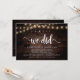 oh oui, nous l'avons fait, Carte d'annonce / invitation de Fuite Amoureuse de Mariage, en Bois de Ferme Rustique, conception de Guirlandes Lumineuses. C'est parfait pour votre réception de mariage et fête de célébration après le mariage. Ajoutez vos détails dans la même police / lettrage.