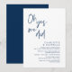 Annoncez avec élégance votre bonheur toujours après avec notre carte d'invitation de célébration d'élévation mariage thème bleu marine moderne, "Oh Yes We did", bar de trésorerie pour adultes seulement. Adaptée aux couples qui perpétuent leur histoire d'amour, cette invitation offre un équilibre parfait entre sophistication et charme, offrant le cadre d'un événement inoubliable. Doté d'un design contemporain moderne, il ajoute une touche de grâce intemporelle à votre journée spéciale. Conçu par le talentueux TeeshaDerrick, cette invitation est une expression élégante de votre amour durable.