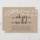Belles Lumineuses Modernes Rustiques Ferme Guirlande, Police Script Noir sur Fond Papier Kraft, Mariage Fuite Annonce, Carte d'Invitation (oh oui nous l'avons fait). C'est parfait pour votre réception de mariage et fête de célébration après-mariage. Ajoutez vos détails dans la même police / lettrage.