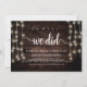 oh oui, nous l'avons fait, Carte d'annonce / invitation de mariage en fuite, en bois de ferme rustique, conception de lumières de chaîne. C'est parfait pour votre réception de mariage et votre fête de célébration après le mariage. Ajoutez vos coordonnées dans la police / lettrage correspondant.