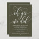 Beau vert vert olive moderne thème calligraphie, Mariage Elopement Faire-part, Carte d'invitation (Oh oui, nous l'avons fait). C'est parfait pour votre réception de mariage et fête post-mariage. Ajoutez vos détails.