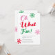 Cette invitation festive de fête présente un script de calligraphie moderne qui dit "Oh What Fun !" en rose, rouge et vert avec coordination des flocons de neige. Les détails de l'invitation sont dans une police moderne. Customisez cette conception en ajoutant une photo et/ou un texte supplémentaire au verso. Le look est amusant, moderne et festif !