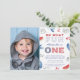 Oh What Fun To Be One Red White and Blue USA flag inspiré Premier anniversaire de la fête Photo Invitation design. Cette conception est destinée lorsque vous ne pouvez pas avoir une fête physique mais que vous voulez toujours célébrer.