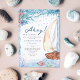Ohé, C'est un garçon ! Mettez le cap sur une célébration mémorable avec cette invitation de baby shower nautique élégante. Dotée d'un charmant design à l'aquarelle peint à la main, l'invitation est encadrée par une bordure complexe de plantes marines et de douces vagues océaniques, créant un sentiment de mouvement et de profondeur. Au cœur du design, un voilier magnifiquement illustré ajoute une touche fantaisiste et donne vie au thème avec une élégance artistique. Le texte personnalisable alterne entre des polices serif raffinées et un script manuscrit moderne, offrant un parfait équilibre entre sophistication et chaleur. Que vous organisiez une réunion au bord de la plage ou que vous souhaitiez simplement un design unique et inspiré de la mer, cette invitation est idéale pour un baby shower à la fois personnel et inoubliable.