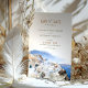 Faites plaisir à vos invités avec cette belle carte Save the Date avec une aquarelle d'art de l'architecture blanche du village d'Oia sur l'île de Santorin, Grèce. Oia est un village pittoresque réputé pour ses vues imprenables sur la mer Egée, ses couchers de soleil colorés et son atmosphère romantique. Vos invités apprécieront cette élégante invitation qui les transportera au coeur de Santorin, l'une des destinations mariages les plus recherchées au monde.