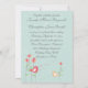 Une belle invitation pour vos nuptiaux à venir avec une illustration fantaisiste d'oiseaux chantant et des fleurs de style moderne. L'arrière - plan est vert menthe et peut être changée selon votre style avec un subtil motif de fleurs blanches sur l'arrière - plan. Le texte est entièrement personnalisable pour vos propres occasions spéciales. Cette coordination est assurée par la collection de Mariages Whimsical Singing Birds with Flowers. Si vous avez besoin d'aide pour la personnalisation de votre journée spéciale ou si vous souhaitez cette combinaison de couleurs différente ou sur des produits qui ne sont pas actuellement offerts avec ce design, veuillez nous contacter par l'intermédiaire de notre magasin WeddingBazaar.
