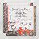 Carton d'invitation Cage à oiseaux avec Inséparables en Bois flotté Beige Terracotta Vintage Bohème Bohémien Faux grain de bois Orange Tangerine Couleurs d'automne Oiseaux de l'amour Save the Date