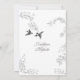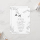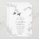 Ce faire-part de mariage est composé d'un couple d'oiseaux qui vole autour de beaux croquis simples de branches et de fleurs. Cette charmante décoration de jardin est faite en gris et blanc avec un intérieur rose clair et poussiéreux.