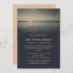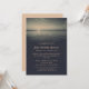 Invitation de cérémonie commémorative dans le charbon de bois et un contact de l'orange chaude et pâle, comportant une photographie de deux oiseaux débarquant sur l'océan au lever de soleil.