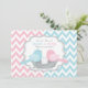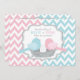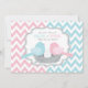 Une invitation à la fête est faite par des oiseaux bleus et roses sucrés, et un oeuf à la poitrine de polka est posé sur une empreinte de nid d'oiseaux et de chevrons.