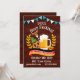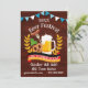 Invitation pour la fête de la bière Oktoberfest avec une tasse à bière, bretzel, saucisse, une bannière ruban aux couleurs du drapeau allemand, drapeaux bavarois sur le dessus pour célébrer l'Oktoberfest à l'automne.
