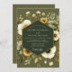 Experience a romantic woodland atmosphere with this elegant design. A deep olive green background sets a moody and sophisticated tone for your special day. Delicate, painterly blooms of ivory anemones and golden poppies are artfully arranged among verdant foliage, creating an earthy and botanical aesthetic.
