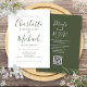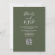 Doté de noms de style signature, cet élégant faire-part de mariage vert olive peut être personnalisé avec toutes vos informations spéciales de jour de mariage sur le devant et vos détails du site Web mariage et le code QR au verso. Conçu par Thisisnotme©