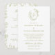 Invitation Olive Green Floral Line Art Monogram Crest Wedding