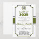 Invitation de graduation simple et élégante. Parfait pour les diplômés hommes ou femmes. Arrière - plan vert olive, journal scolaire peut être modifié.