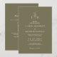 Invitation Olive Green Leaf Monogramme QR Code Mariage