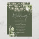 Invitation Olive Green String éclaire Floral QR Code Mariage