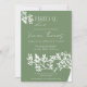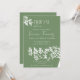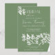 This elegant bridal shower invitation features a soft green background accented with delicate white floral illustrations in the corners, creating a fresh and romantic look. The typography blends a graceful script with a clean serif font, giving the design a timeless and sophisticated feel.