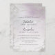 Conception de mariage à l'aquarelle ombre légère violette argent pailleté givré avec texture de fond lavande pastel décolorée peinte à la main. Un look chic et moderne pour un mariage de printemps ou d'été, avec une palette de couleurs pastel douces : lilas lavande violet, et veines et détails en faux feuille d'argent, et une police de lettrage Script pinceau moderne tendance - Cartes de mariage personnalisées !