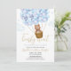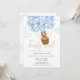 Joli "nous pouvons attendre longtemps" teddy ours thème bleu garçon invitation baby shower avec votre code QR registre et les détails de douche sur le verso. Conçu par Thisisnotme©