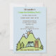 Le design d'une fête d'anniversaire de camp super mignon présente un dessin d'une tente avec des bouts de fête accrochés dessus. La tente se trouve devant les montagnes et à l'intérieur des arbres. À côté de la tente du camping se trouve un mignon petit ours brun. Il y a du texte personnalisable en caractères marron et vert où vous pouvez ajouter le nom du garçon d'anniversaire et toutes les informations de la fête de camping d'anniversaire. Sous la tente et l'image de l'ours est un texte en police marron qui dit "Nous pouvons "faire attention" attendre !" L'arrière - plan de l'invitation est de couleur bleu pâle. Le revers de l'invitation a le même arrière - plan bleu et est couvert dans un motif de la tente graphique du camping. C'est une adorable invitation à thème d'anniversaire de camping. Plaques de papier, serviettes et affranchissement correspondants également disponibles. Aussi disponible pour les filles en rose!